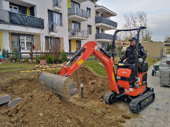 -Kis méretű minikotróval szűkebb helyeken, meglévő kertekben végzett földmunkák.