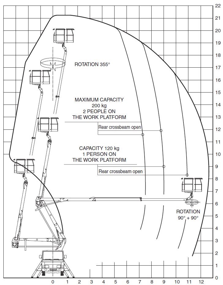 Legnagyobb munkamagasság: 21 m